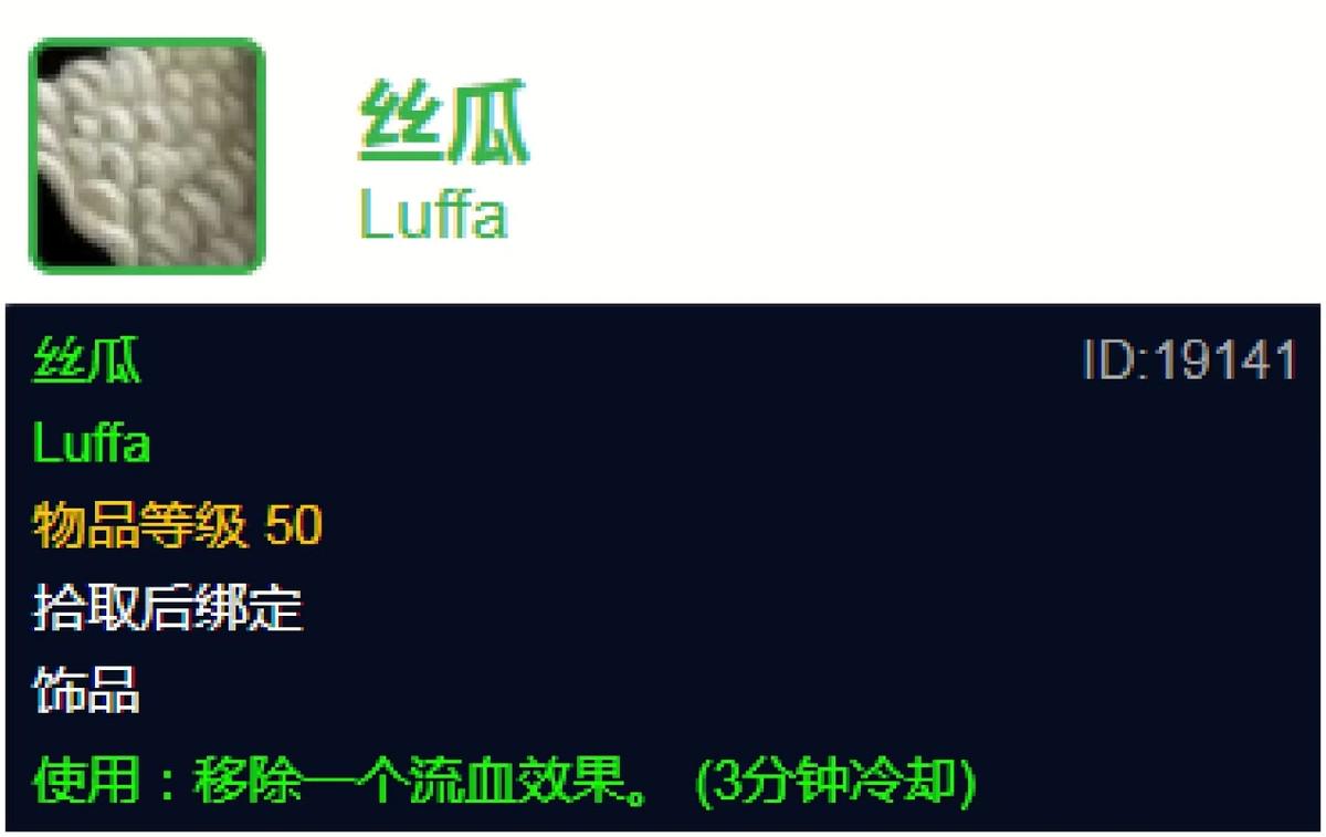 既然谈到盗贼了,喵叔运转飞快的小脑袋瓜子就想起了这款丝瓜,灼热峡谷任务“熏火龙”奖励,这东西地球时代对于热衷于PVP的盗贼绝对神器,毕竟身负流血伤害的盗贼一般都会躺板板,而能移除流血效果且CD只有3分钟的丝瓜就让你无后顾之忧了,可谓超模神器,你值得拥有!那么最后的灵魂拷问给到各位大兄弟,以上6大最具超模实力的绿色饰品,有没有玩家全部拥有过呢?我们评论区见!